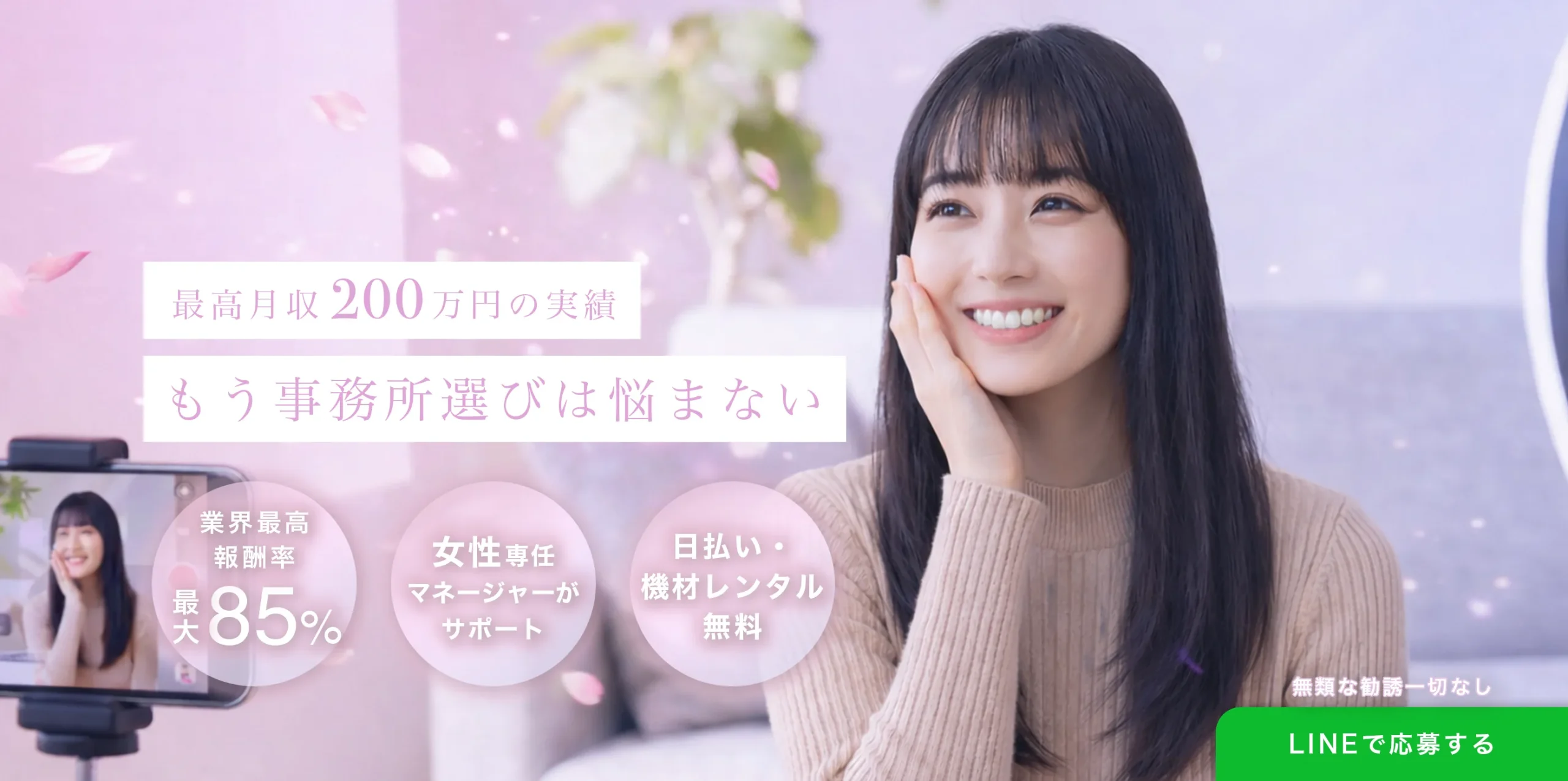 報酬率最大85%で在宅・貸し出しルームでの配信をサポートしています。